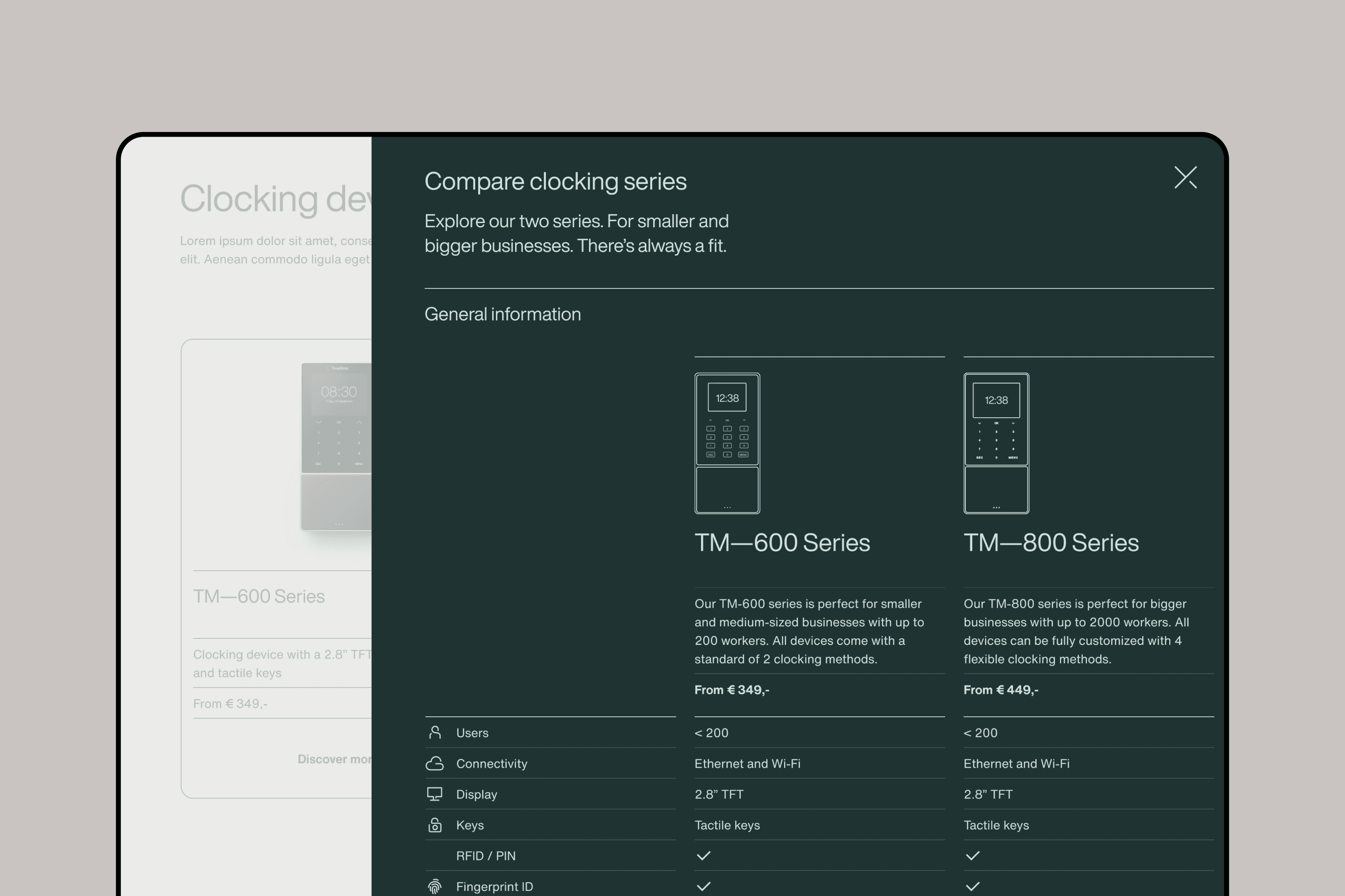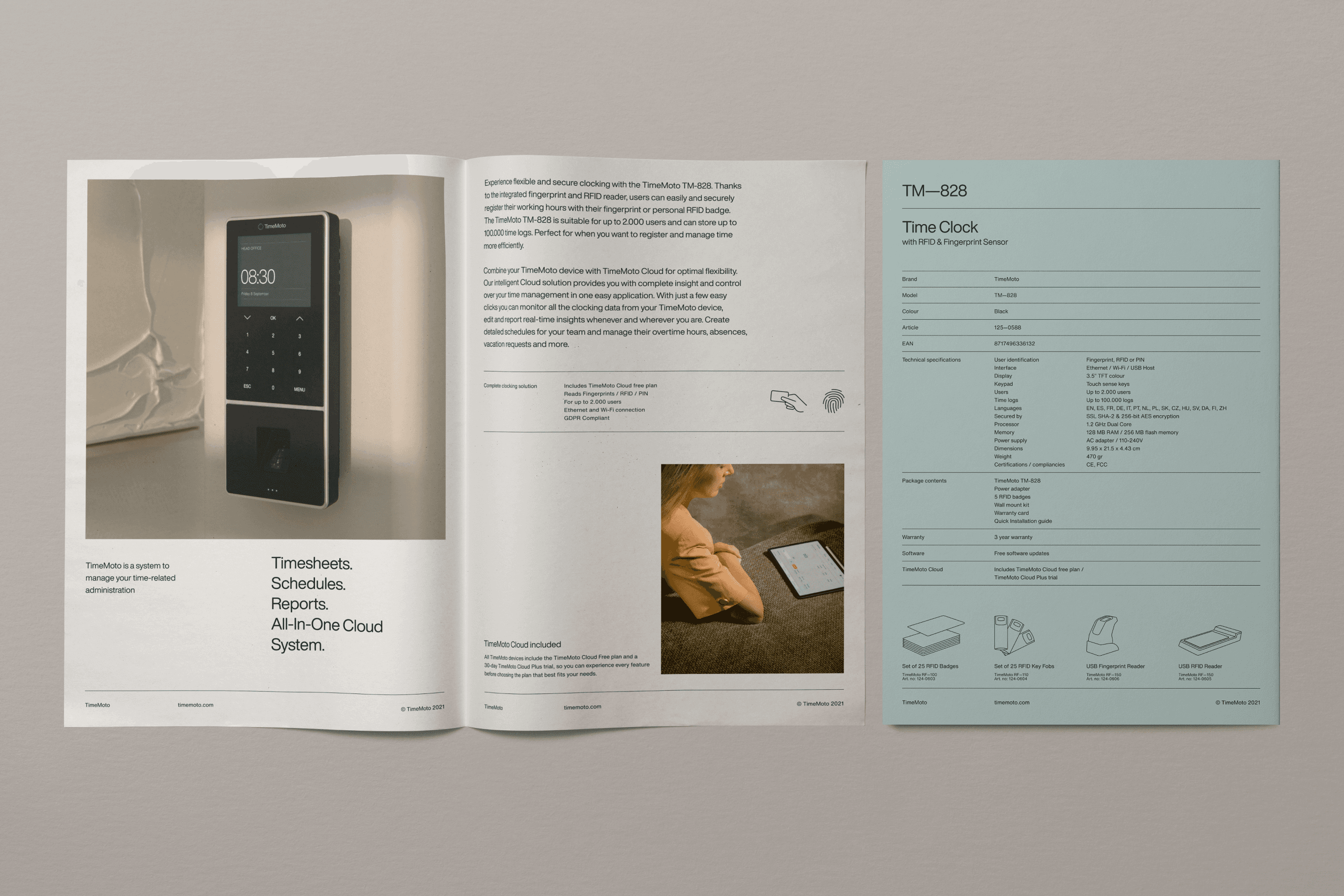 Time is a concept we invented, and still can't control. We manage it, save it, stop it. We even try to borrow it. Time for clarity, forms the basis of the rebranding of TimeMoto: one of the world’s fastest growing players in time management solutions. Together with TimeMoto, we built a new positioning, strategy, and visual identity — brought to life across website, app, and product packaging. Calm and clear, but warm and human. Establishing TimeMoto as the most design- and product-focused company in the field, and turning a functional choice into a preferred one.